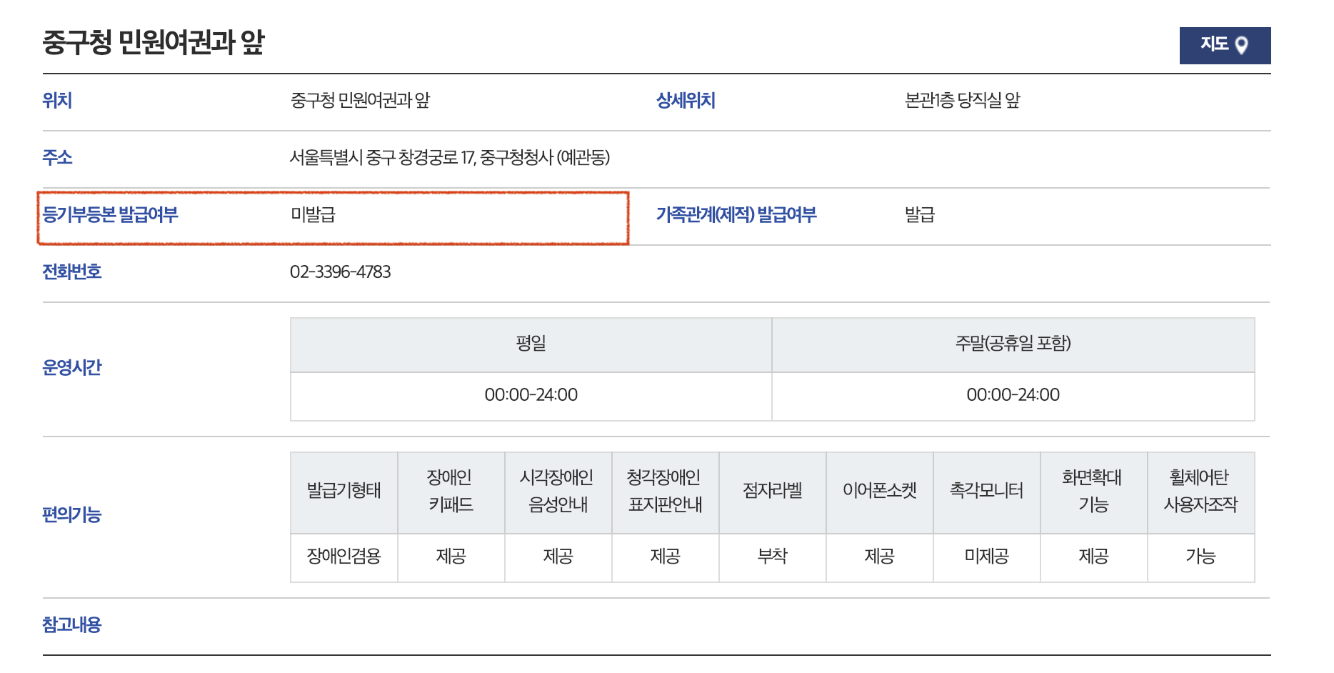 대부분 등기부등본 발급, 가족관계 발급이 가능하지만 간혹 불가능한 기기가 있다.