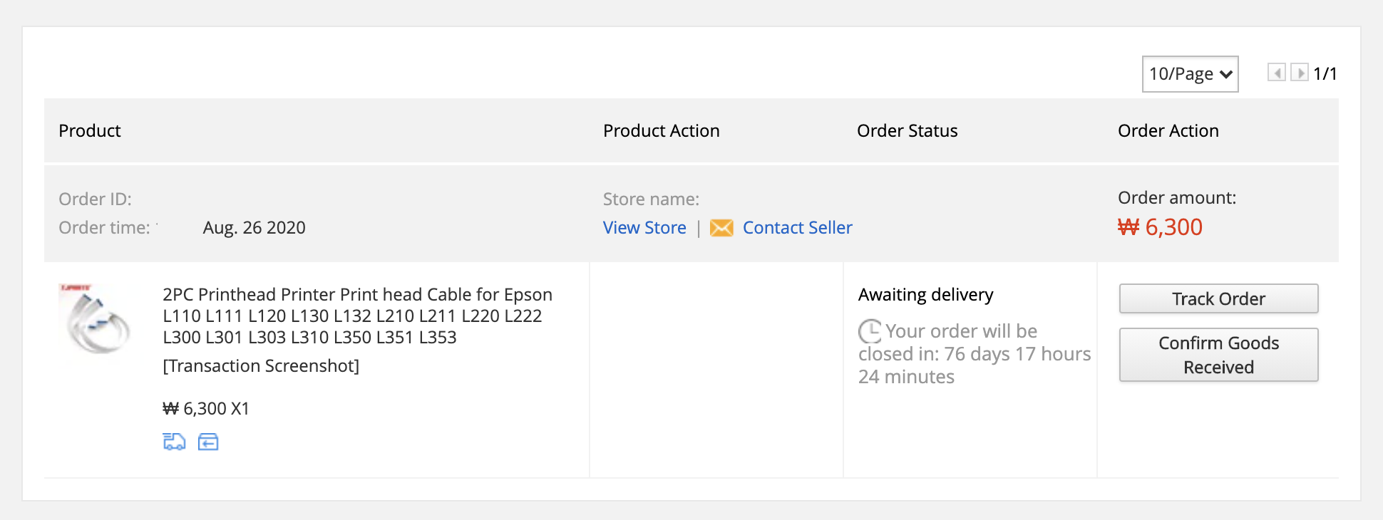 구매일 2020년 8월 26일 주문