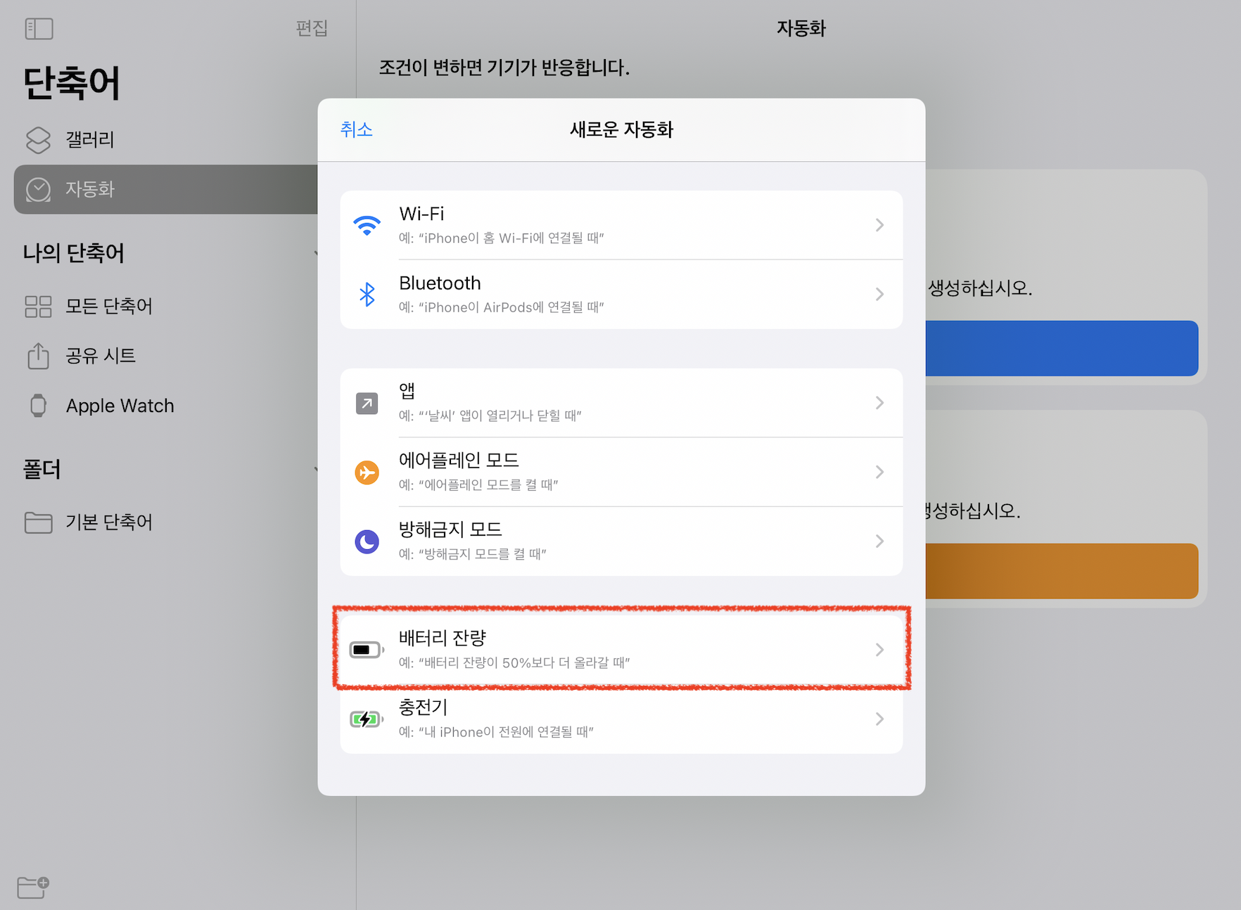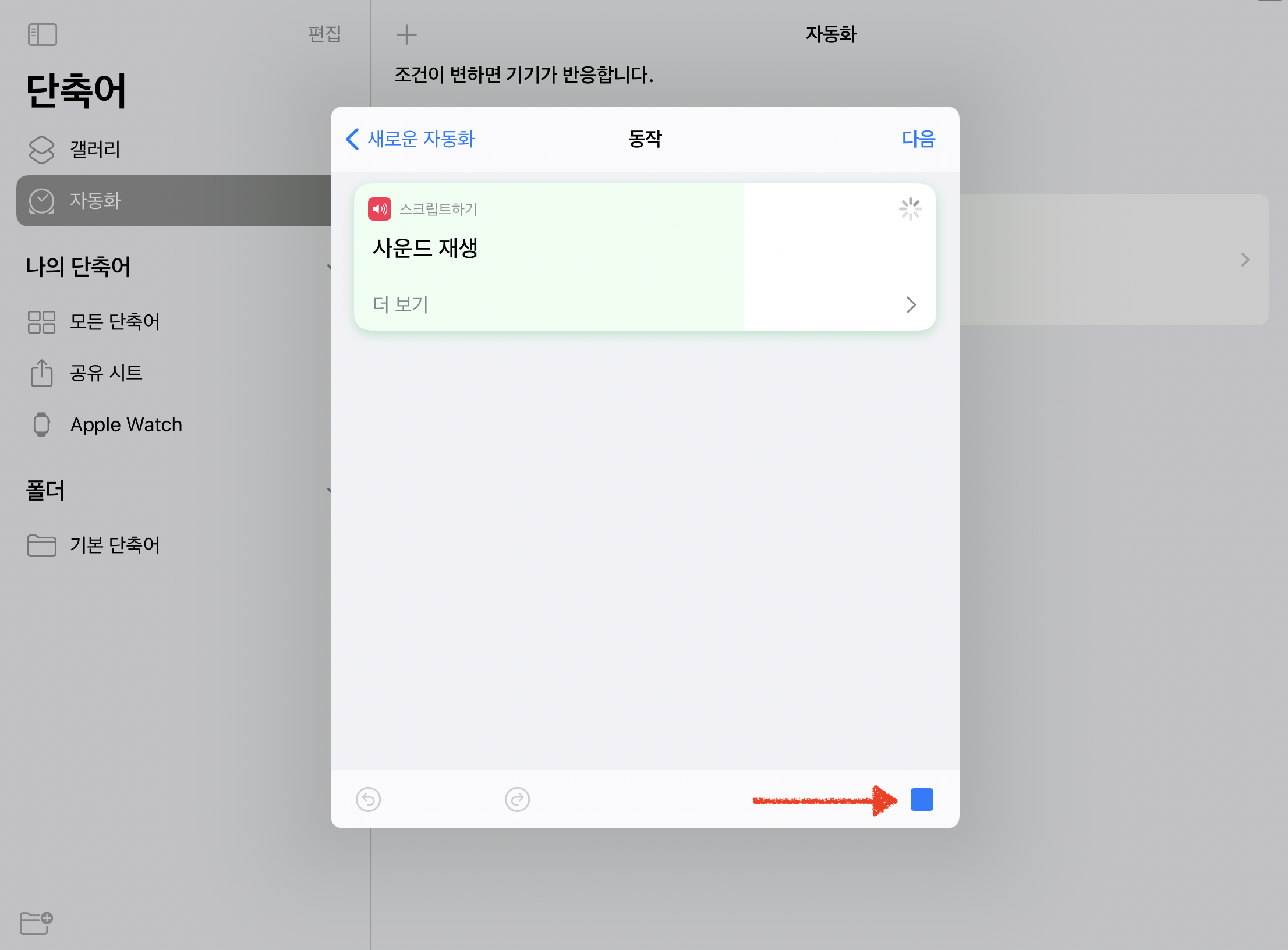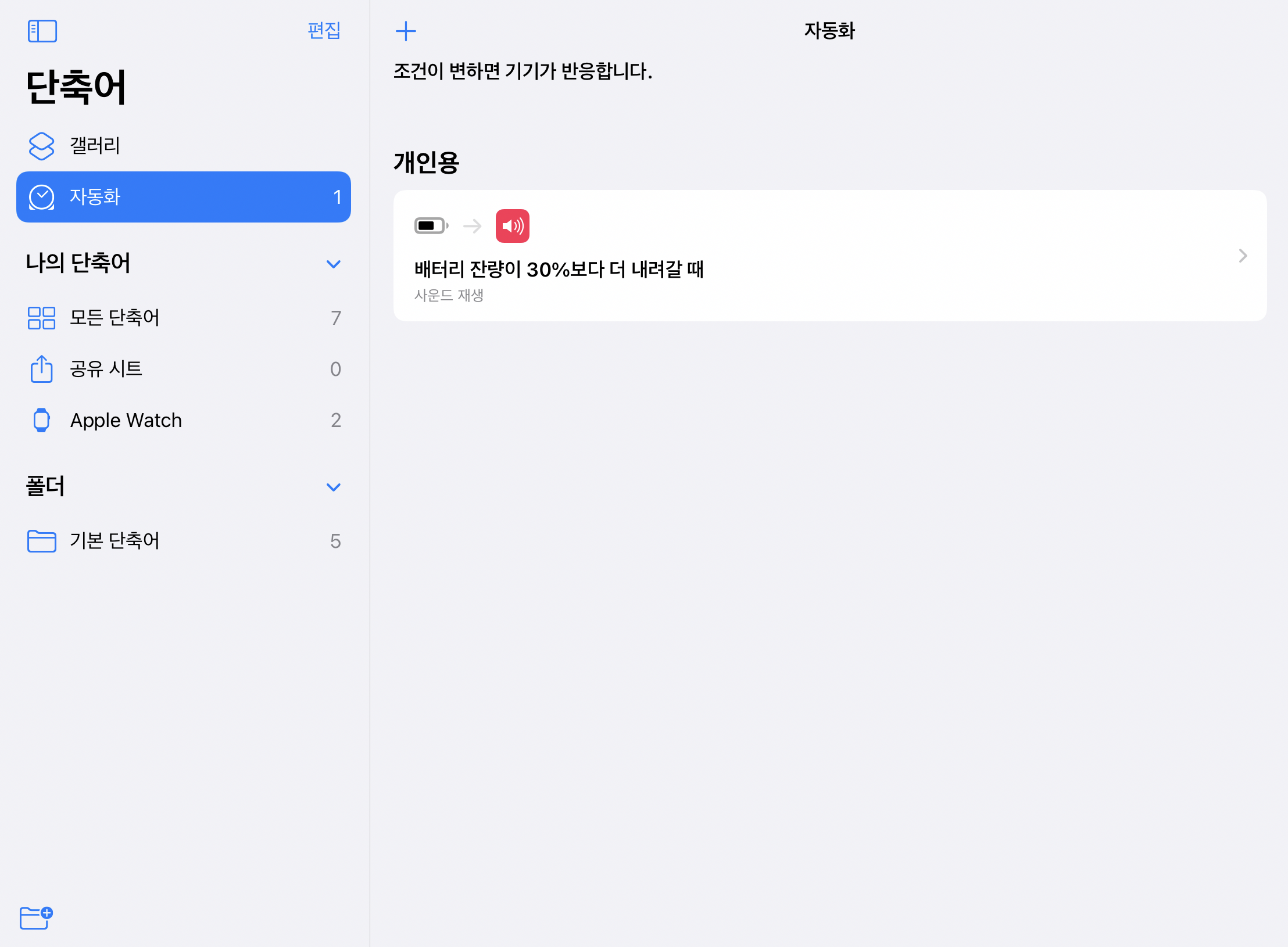 1. 단축어 앱 실행 > 개인용 자동화 생성 선택