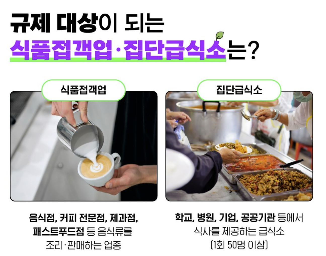 집단금식소, 식품접객업, 일반 음식점, 휴게 음식점, 제과점, 대규모 점포 등 사실상 모든 도.소매업이 대상이다.