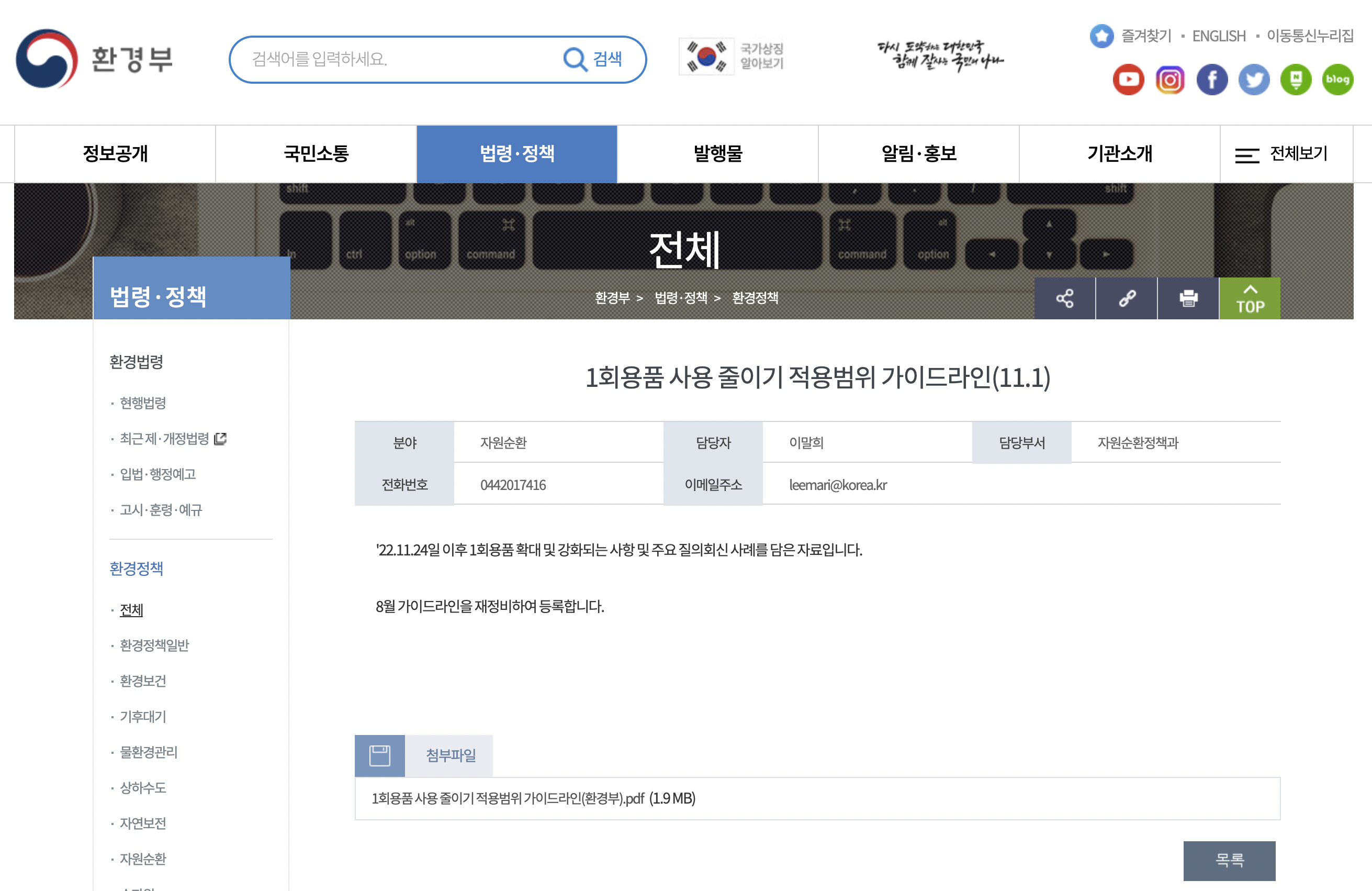 환경부 법령.정책 사이트에 들어가면 실제 질의 사례를 담은 자료를 확인할 수 있다.