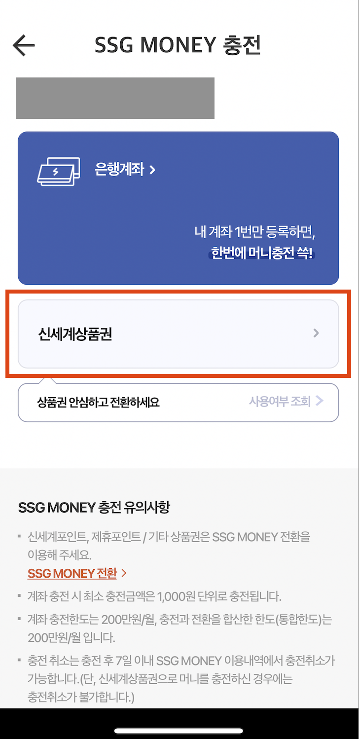 1. SSGPAY(쓱페이) 앱에서 상품권 충전