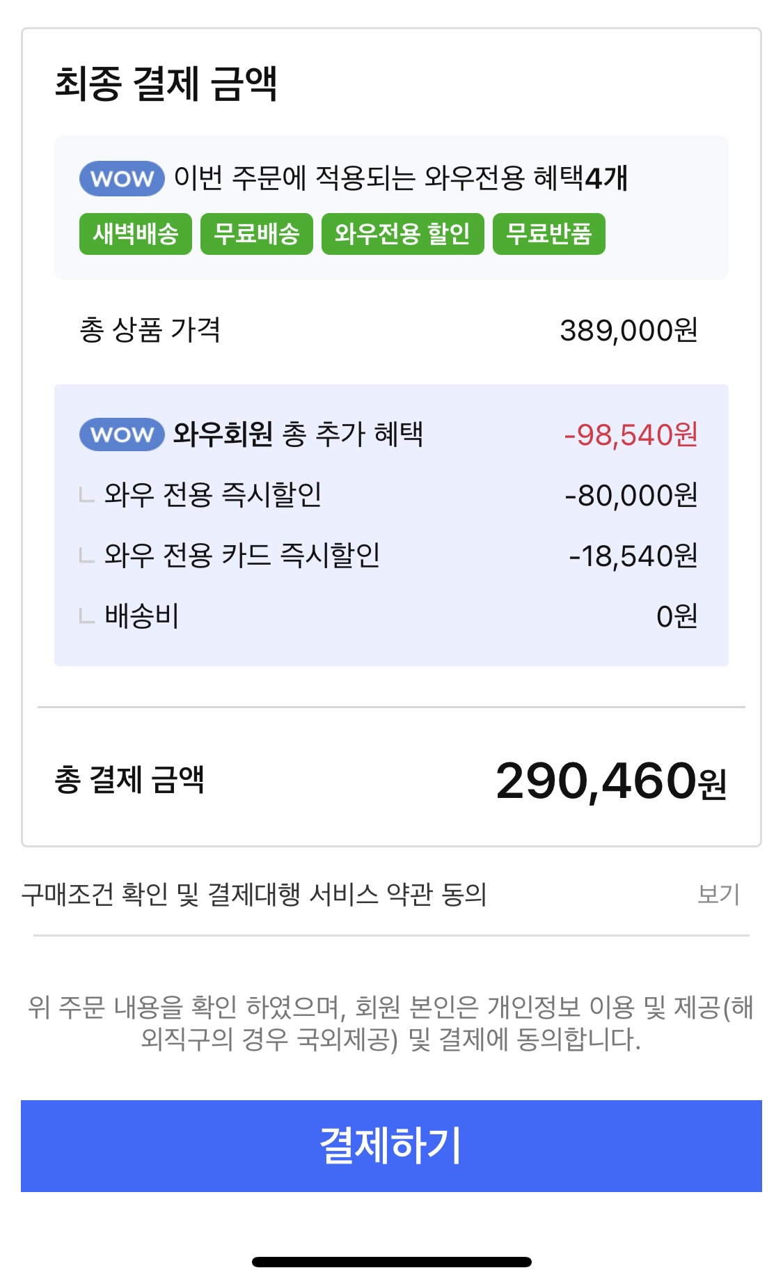 쿠팡 와우 할인+신용카드 할인까지 모두 받으면